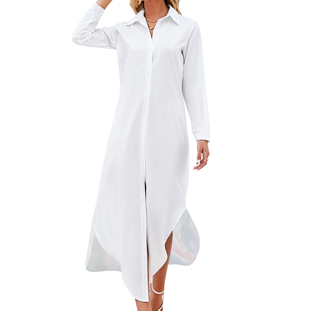 Custom Women's Long Sleeves Shirt Dress Button Up Slit Skirt